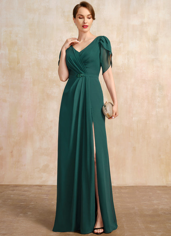 Chaque élément de cette robe a été pensé pour sublimer votre allure. Son décolleté en Col V, élégamment plissé, met en valeur votre buste avec subtilité, tandis que le dos en V apporte une touche de sophistication inattendue. La ceinture délicatement ornée de perles souligne votre taille, créant une silhouette harmonieuse. La fente audacieuse sur la jambe, quant à elle, ajoute une touche de modernité et de liberté de mouvement, parfaite pour danser toute la nuit. Fabriquée en mousseline aérienne, cette robe fourreau longue et fluide est équipée d'un soutien-gorge intégré, vous assurant maintien et confiance sans compromis sur le confort.